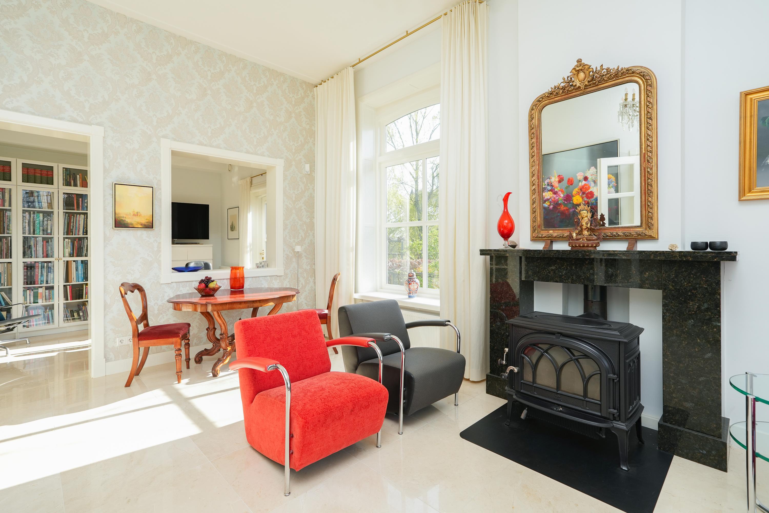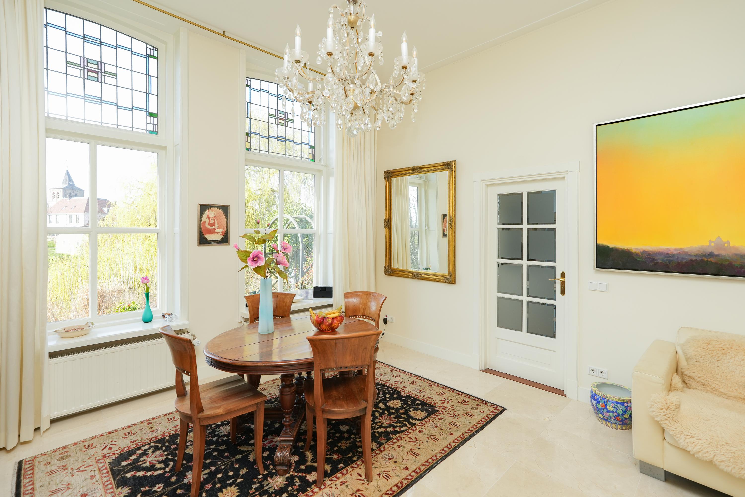 Historic house Ooij is positioned high on an old river mound beside a picturesque kolk in the rural outskirts of Ooij. Built in 1875 as a rectory and now recognized as a municipal monument, this residence has been sensitively renovated, seamlessly marrying original character with contemporary refinement. The home comprises two full floors and a spacious historical cellar, while a generous atelier extension welcomes light and sweeping views of the garden and surrounding meadows.