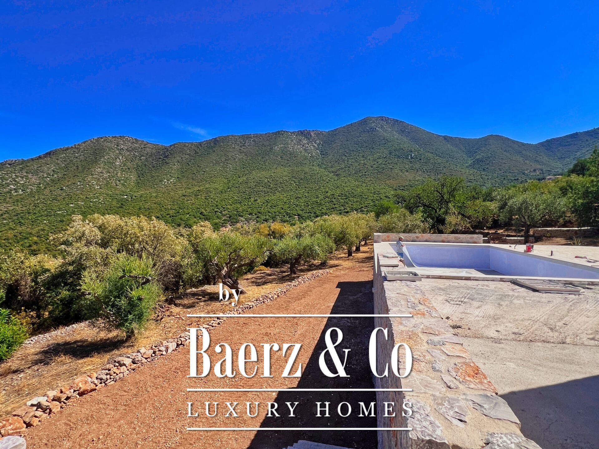 Detached house Poulithra embraces a singular blend of landscape and architecture in the heart of Greece, set within a private 4,200 m² olive grove. With 235 m² of living space and panoramic sea and mountain views, this residence dramatizes the light and openness of its setting, allowing every room to connect with the horizon.