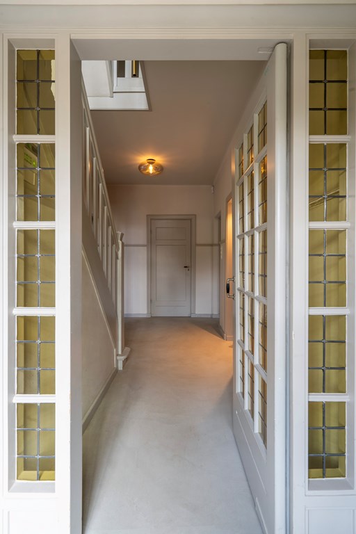 From the hall, an impressive staircase—an architectural feature running like a red thread through the home—leads to the first floor.