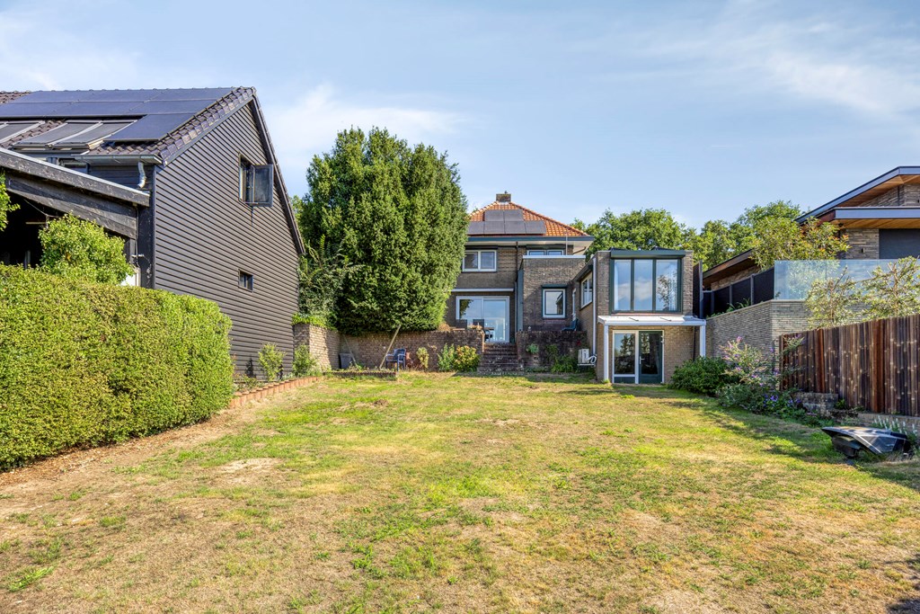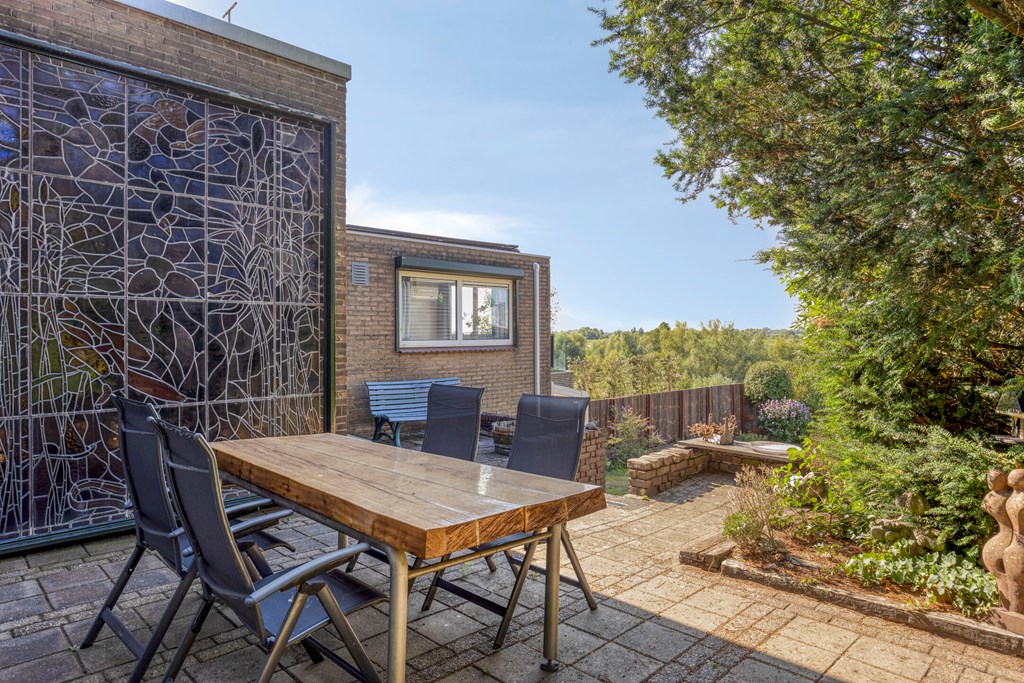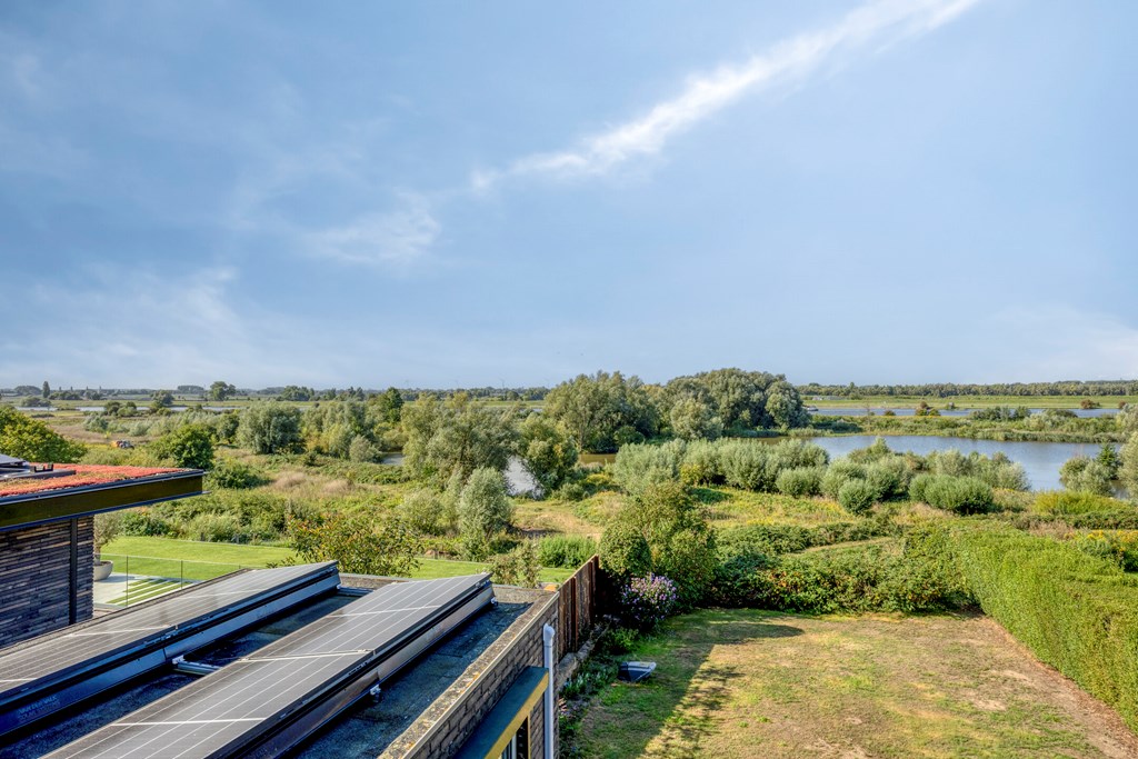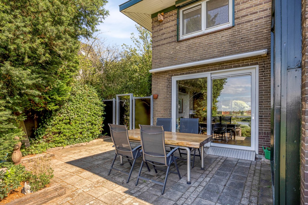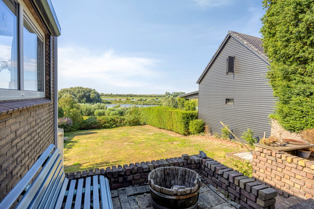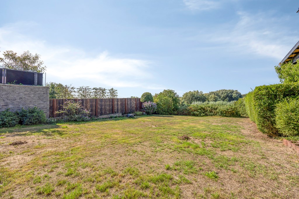 A rear garden with a sunny aspect and magnificent unobstructed views over nature and water is the highlight of this home. With a paved terrace, there is ample room for a lounge set or outdoor dining table, while the garden’s greenery provides peace and privacy.