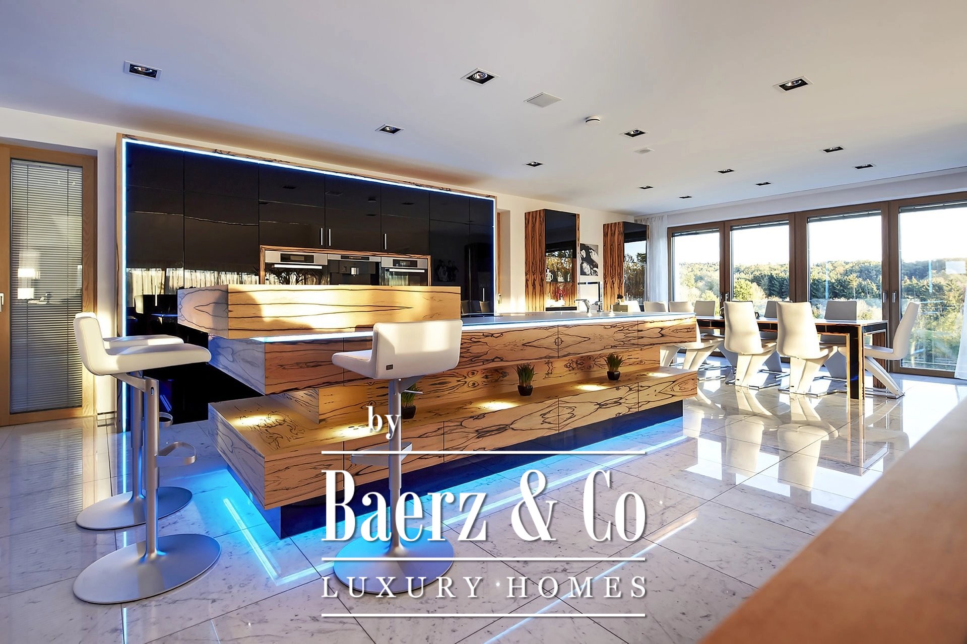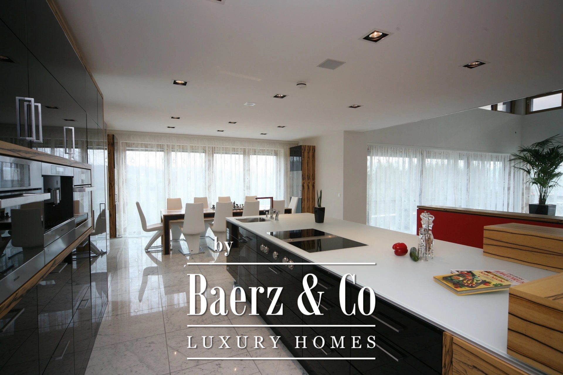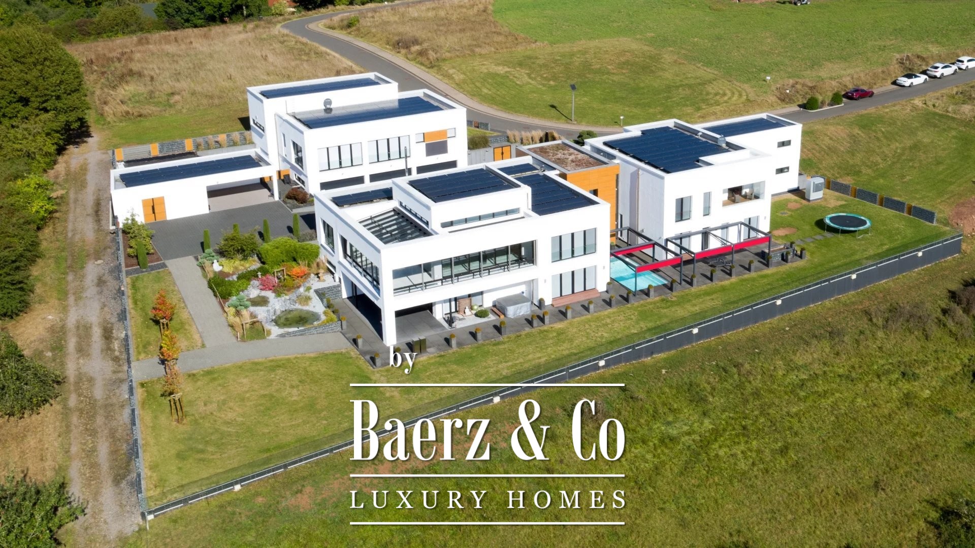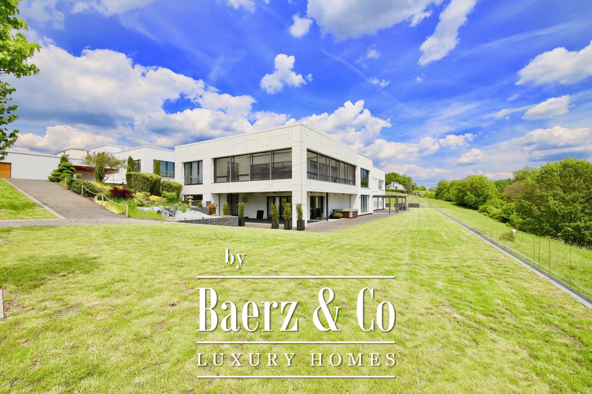 Villa Roth an der Our stands just beyond the Luxembourg border, surrounded by nature and offering an expansive 786 m² of ultra modern architecture on a plot of 3,167 m². This villa Roth an der Our is defined by its clean lines, panoramic vistas, and rigorous attention to detail. Vast glazed spaces flow into nature, turning light and horizon into a daily rhythm. The main building is anchored by two well-appointed kitchens, refined flooring in marble, parquet, and tile, and security systems offering discreet technology and ease—including fingerprint access and automatic locking doors.