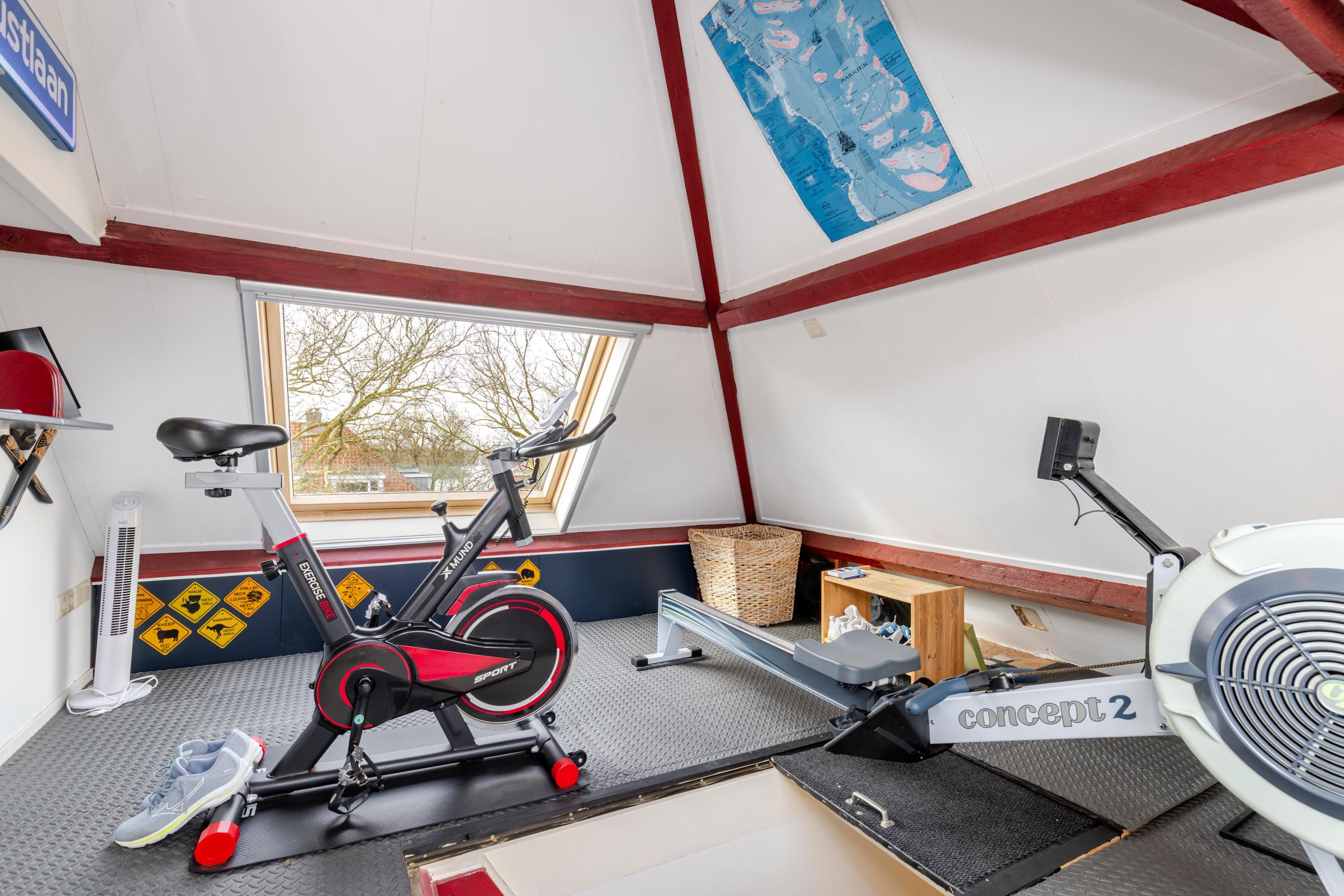 Accessible via a fixed staircase, currently used as a gym with skylights providing plenty of light and ventilation.