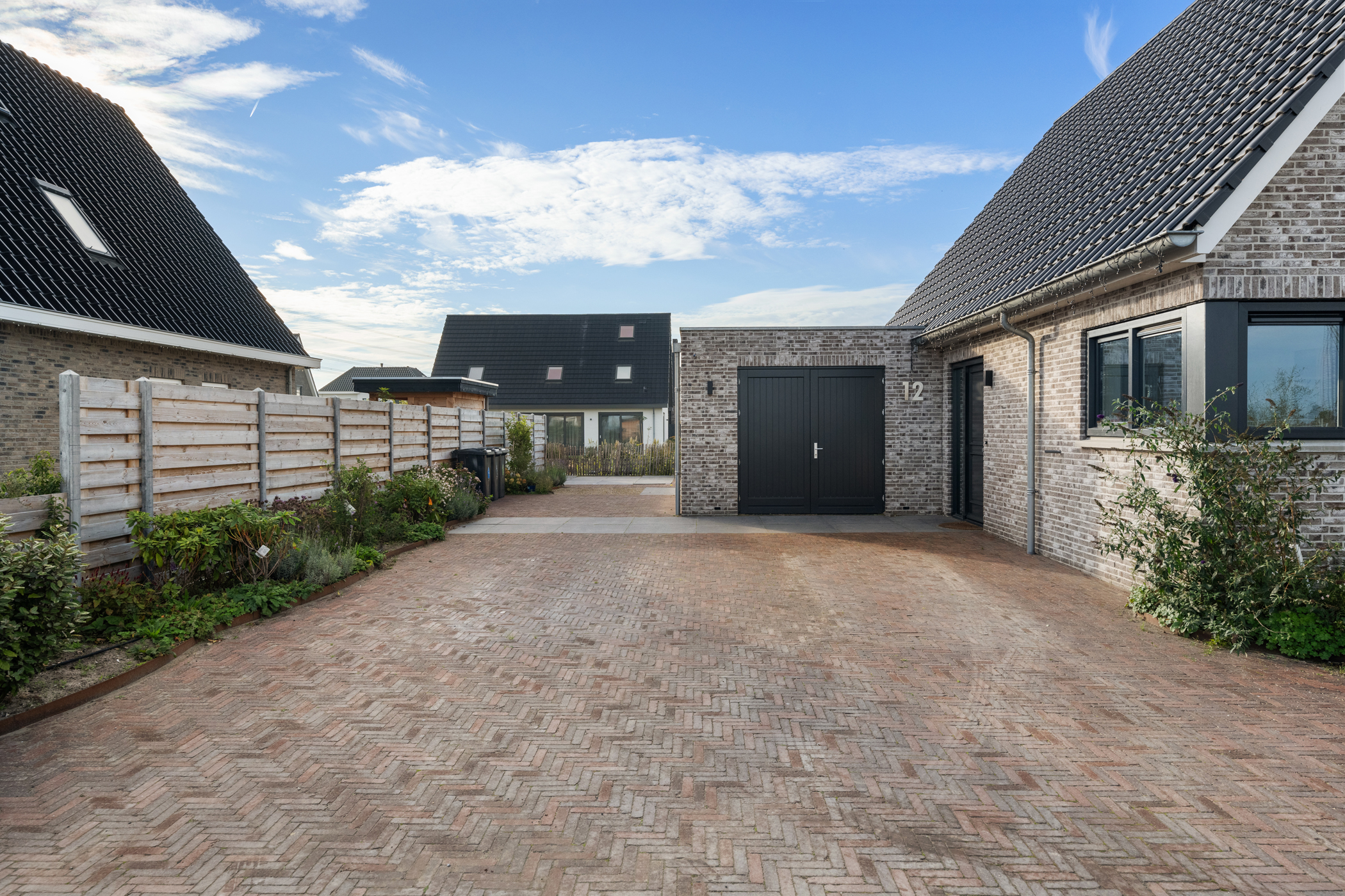 On the private driveway, there is ample parking space and access to the spacious storage area.