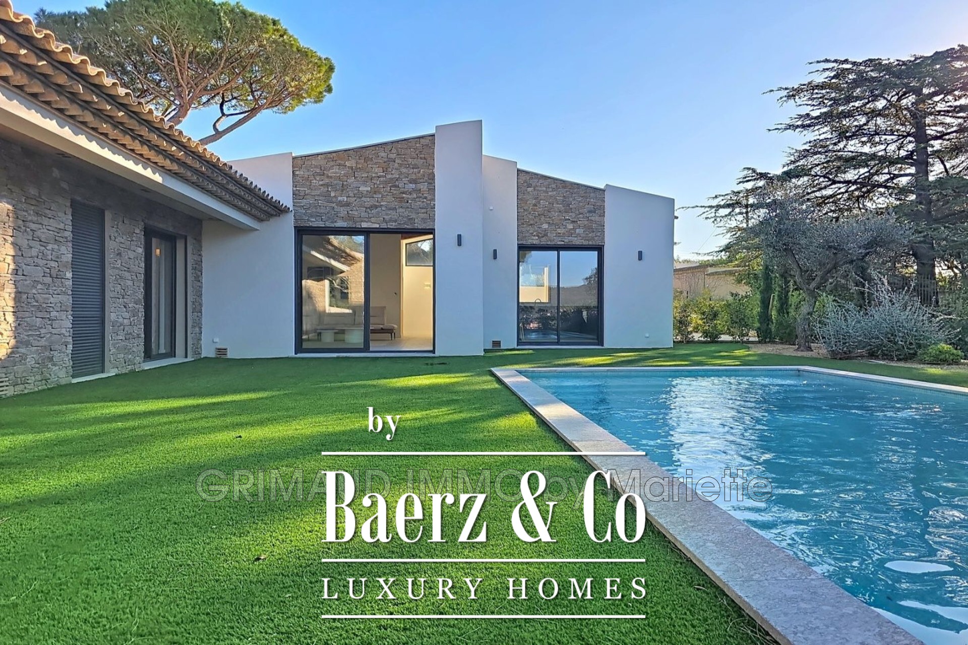 Detached house Sainte-Maxime presents a rare balance of privacy and open outlooks in the heart of the Côte d’Azur. Newly built in 2024 and immaculately maintained, this single-story property captures both the tranquillity of its west-facing aspect and the vibrant life of Sainte-Maxime village, visible from living spaces and terraces. The house unfolds across 128 m², including a 50 m² living area anchored by a fully equipped kitchen and a fluid connection to outdoor patios. Three bedrooms are complemented by a full bathroom, two shower rooms, and three toilets, with details such as reversible air conditioning, double glazing, a practical laundry room, and a crawl space shaping daily life.