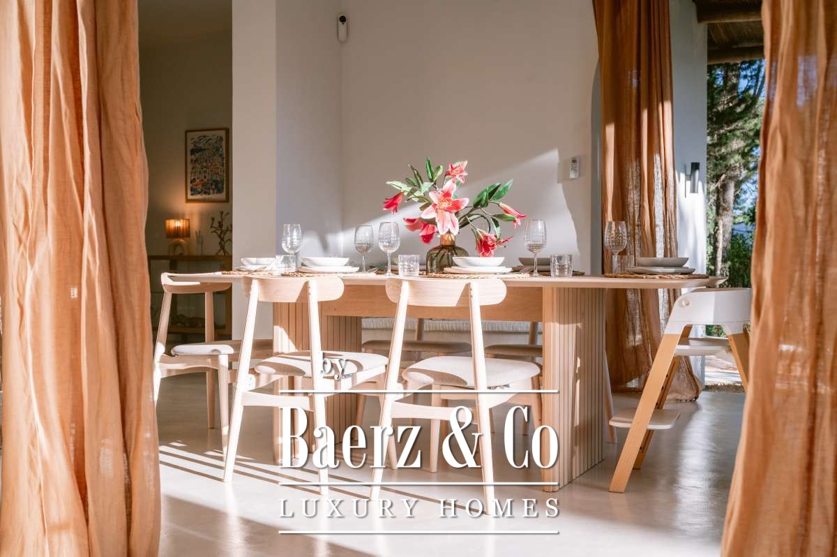 Villa San Agustín Spain connects privacy with effortless outdoor living amid a tranquil forested landscape. This fully renovated villa, with a built area of 175 m² on a private plot of 1,783 m², embraces the enduring spirit of Ibiza while remaining close to local restaurants and some of the west coast’s revered beaches. The setting blends seclusion and centrality, surrounded by the verdant beauty of San Agustín.