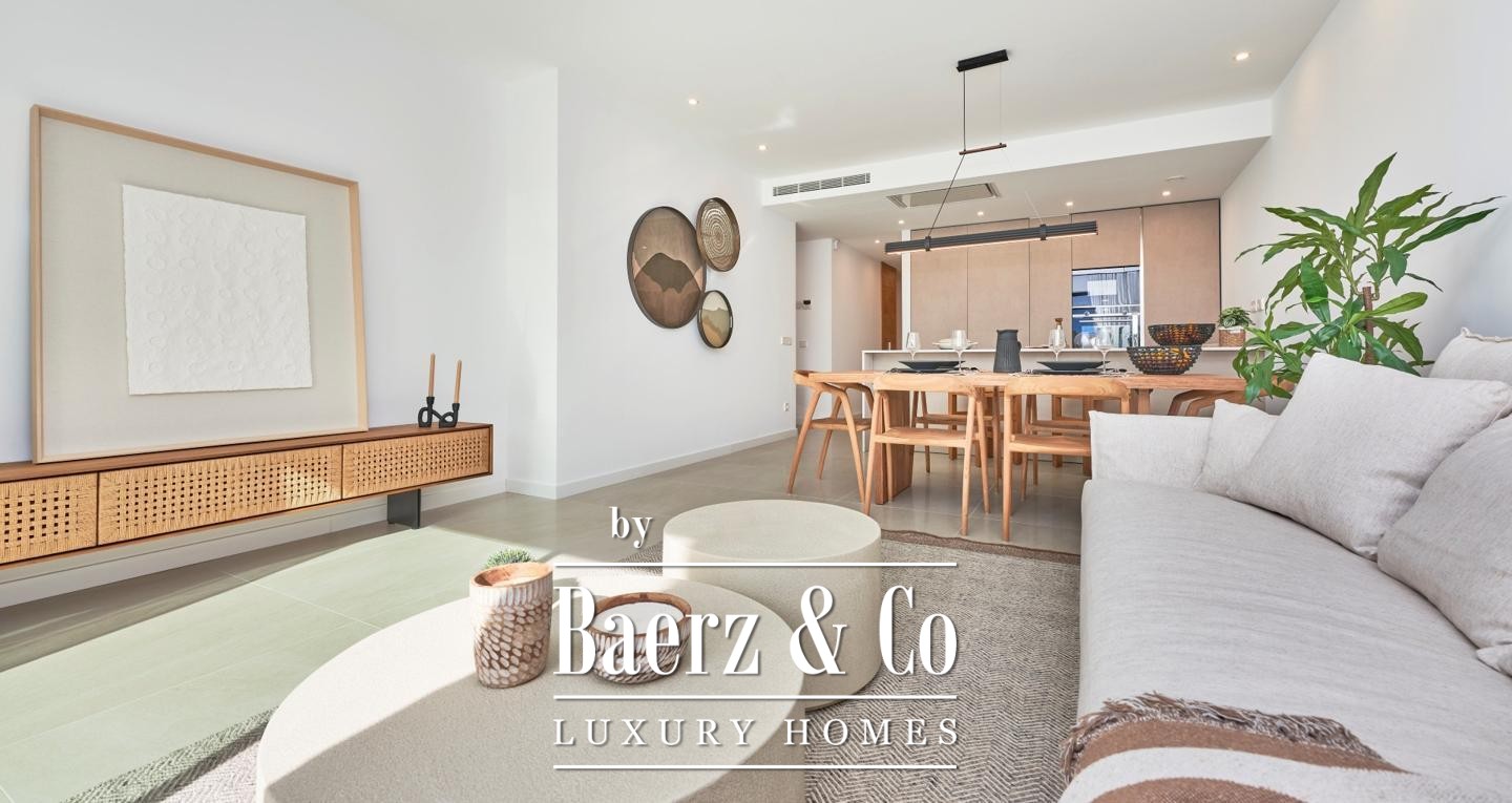Apartment Sant Elm offers a rare balance of light, privacy, and modern Mediterranean design. Within an exclusive collection of just 20 homes, this residence distinguishes itself with an expansive 109.05 m² private rooftop terrace, providing generous space for relaxation and open-air living with panoramic views over the bay, landscape, and azure Mediterranean horizon.