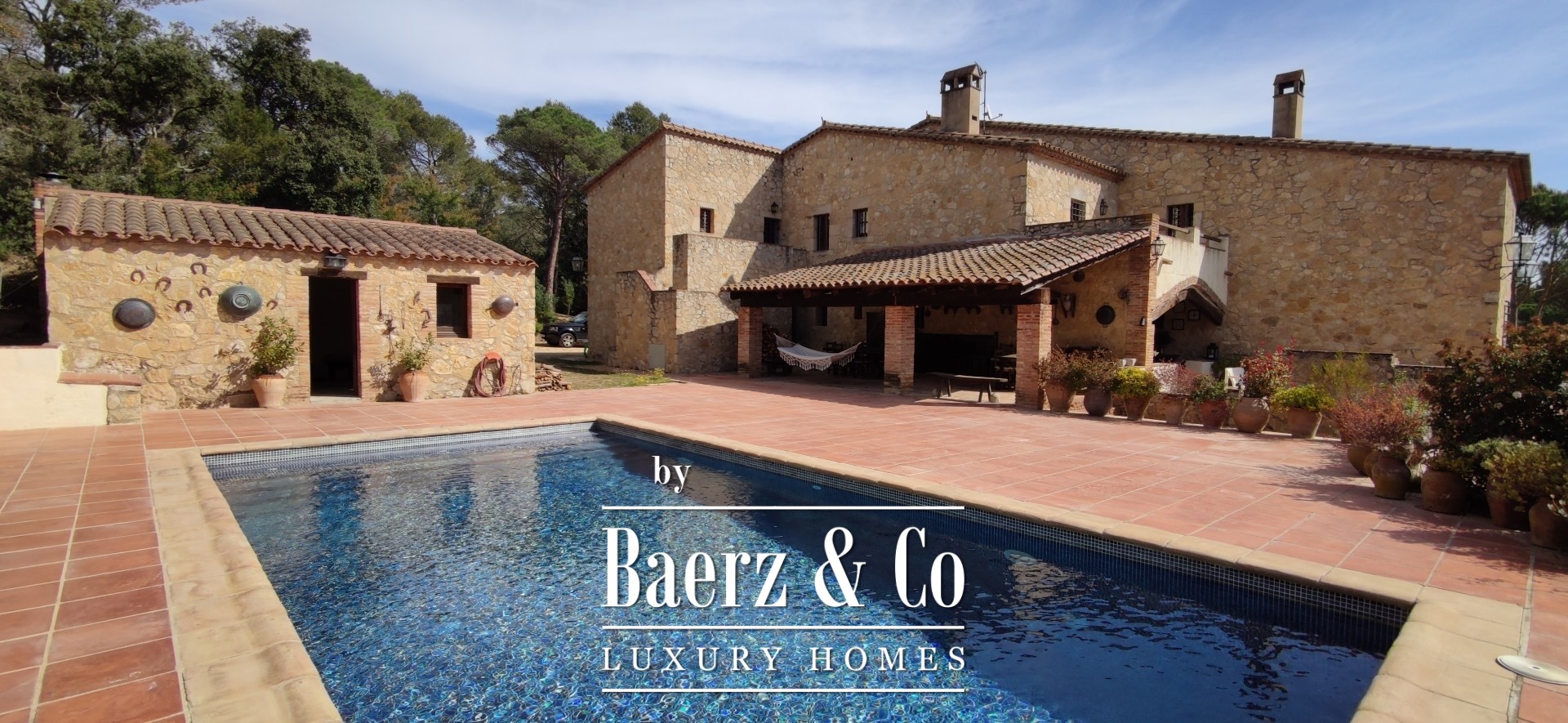 Stone farmhouse Santa Cristina d´Aro sits quietly in the heart of the Empordà countryside, blending authentic Catalan architecture with a pace of life shaped by the land. The farmhouse stands on a 19,000 m² estate with sweeping country and hill views, only ten minutes from famed beaches and golf courses along the Costa Brava.