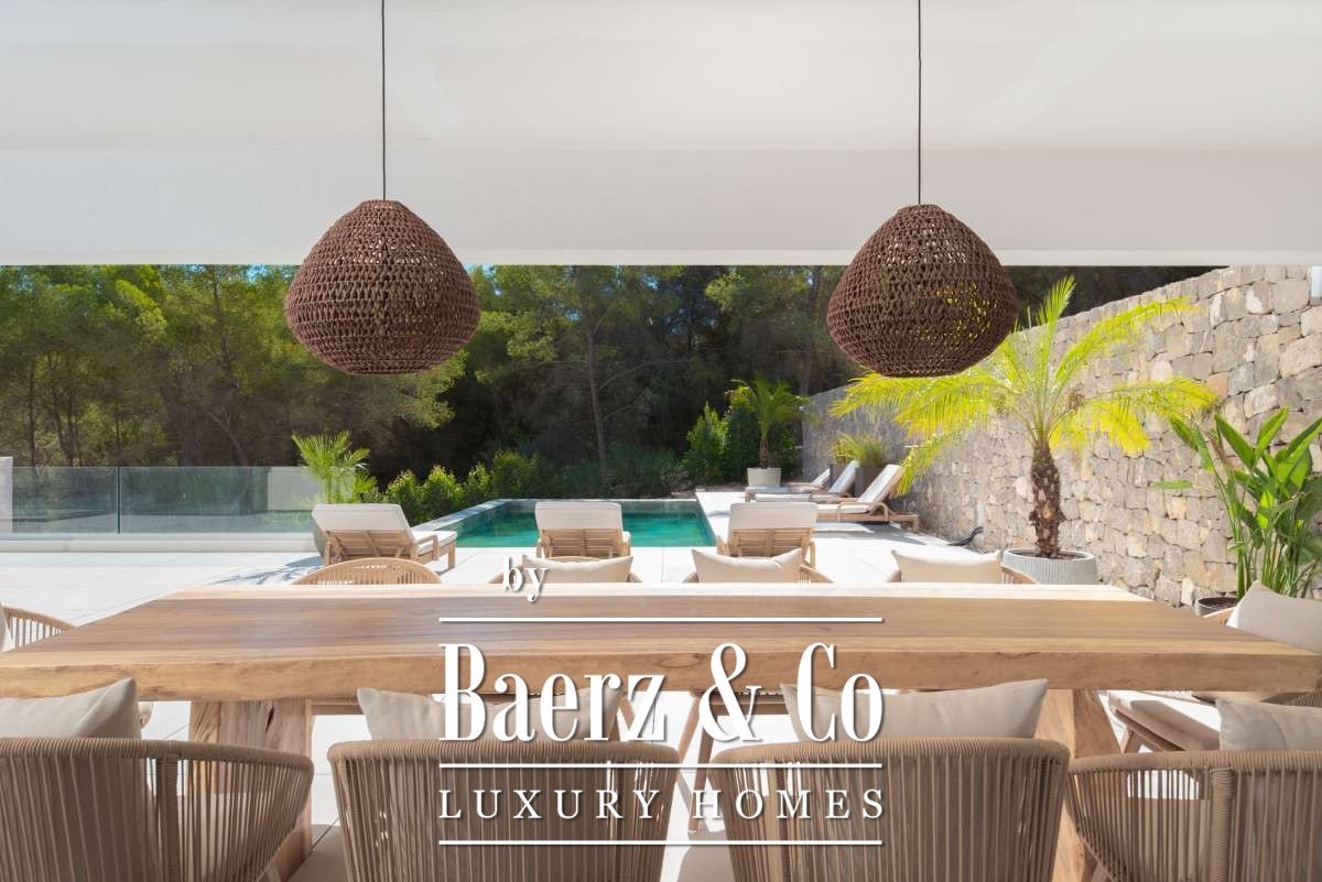 for a sophisticated touch. The master bedroom has its own private terrace, providing a peaceful retreat where you can enjoy the stunning views and surrounding nature. Thanks to its smart design, the villa offers a perfect balance between privacy and open living areas, making it an ideal home for both family life and relaxation.The property is equipped with modern technology and high-end features, including air conditioning, central heating, and a security system, ensuring maximum comfort throughout the year. The combination of stylish architecture, premium finishes, and a functional layout makes Casa Llisa a unique villa in one of the most desirable locations on the island.Outdoor Living in Style: A Garden and Terraces Designed for EnjoymentThe outdoor space of Casa Llisa is designed for relaxation and comfort. The villa is set on a beautiful plot surrounded by Mediterranean plants and palm trees, creating a serene and private atmosphere. The highlight of the outdoor area is the spacious swimming pool, perfect for a refreshing dip on warm summer days. Around the pool, sun loungers and lounge areas provide the perfect spot to relax in the sun or shade.The villa boasts multiple large terraces, ideal for alfresco dining, entertaining guests, or simply enjoying the peace and privacy of the surroundings. The covered outdoor space ensures that you can enjoy Ibiza’s pleasant climate all year round.Additionally, Casa Llisa offers a large garage and ample parking space on the property, providing extra convenience and security. The villa is also equipped with sustainable features, allowing you to enjoy luxury living in an eco-friendly way.Whether you are looking for a permanent residence, a holiday home, or a valuable investment, this villa in Roca Llisa has everything you need for a carefree and comfortable life in Ibiza.