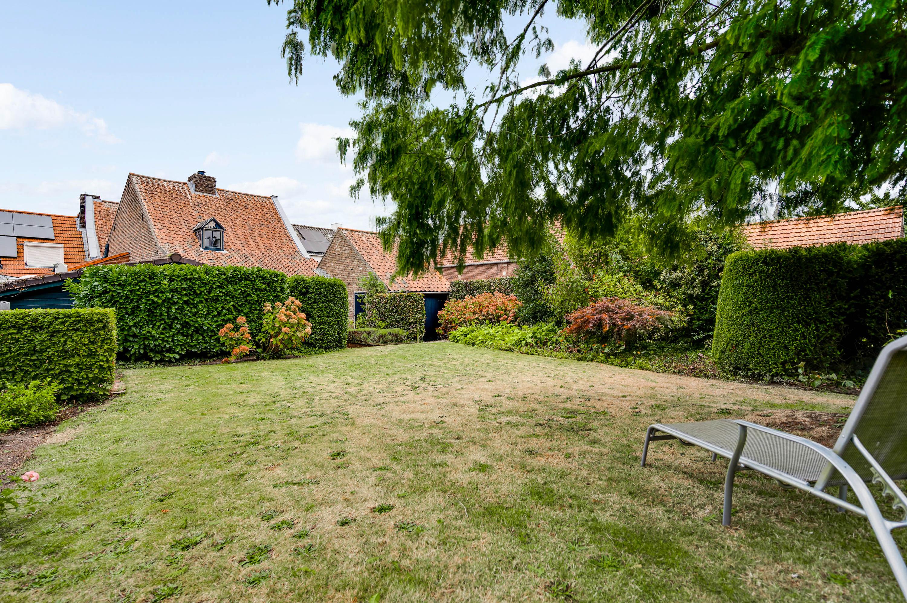 The garden seamlessly blends in with the house and offers plenty of privacy, despite its central location in the historic town center. The back garden is accessible via a private rear entrance and features several patios – one of which is covered – a lawn, and attractive flower beds.