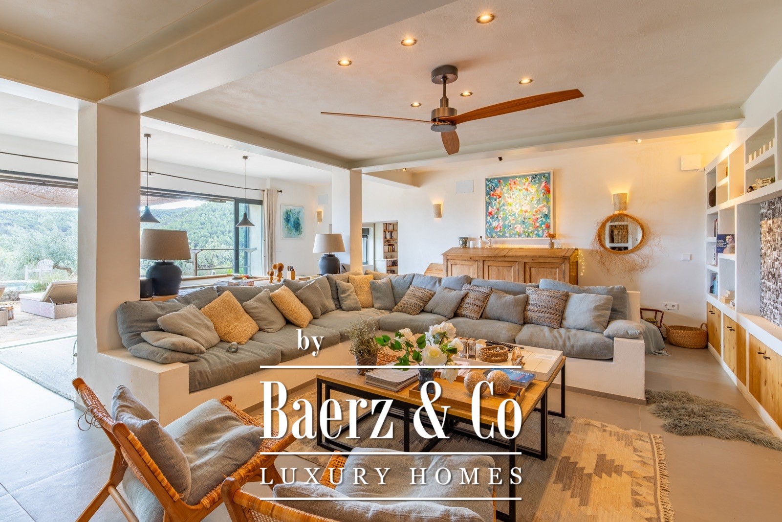 Finca Torremanzanas stands as a rare property type in one of Spain’s most tranquil inland regions. Set on 18 hectares of lush, Mediterranean land at 850 meters altitude, this beautifully revived estate is just 3 km from the village of Torremanzanas and offers panoramic views of Puig Campana. Thoughtfully renovated in 2022, the 450 m² main house merges refined modern finishes with authentic Mediterranean character. Each living space is bright and elegantly restrained, opening to a landscape planted with olive, almond and walnut trees.