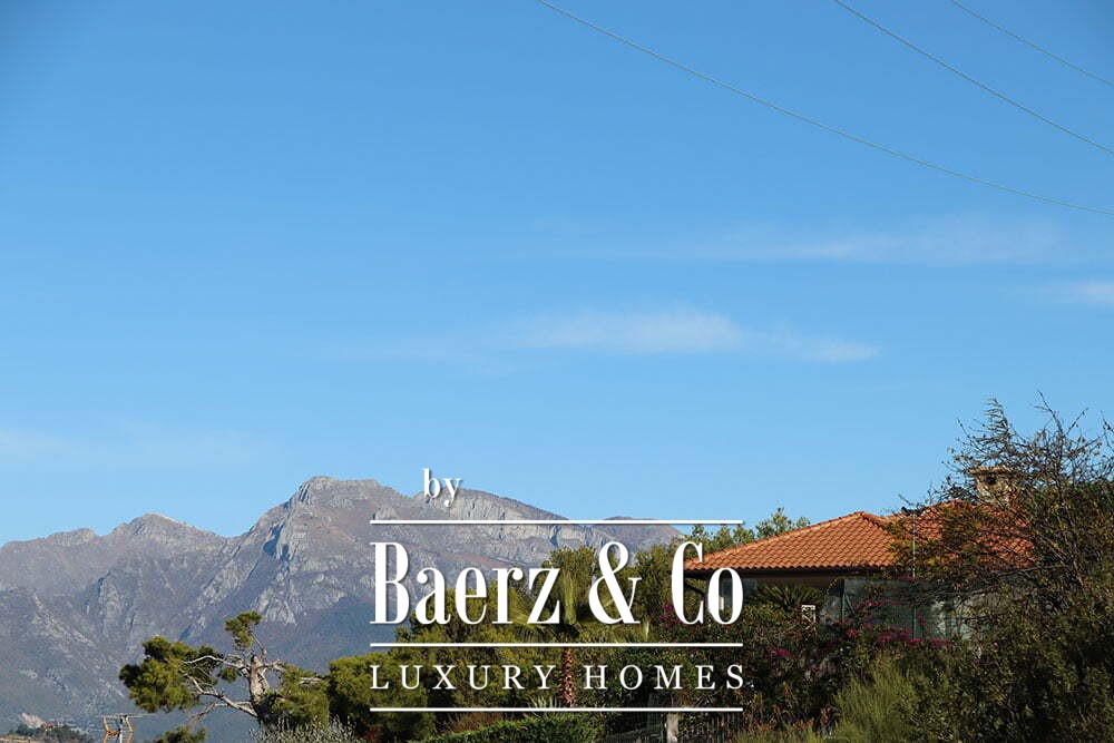 The gardens provide intimate shaded corners under a pergola, with ample space to incorporate a swimming pool if desired. The renowned beaches and coastal culture of Bordighera are a short ten-minute drive. This villa for sale in Vallebona balances cultivated seclusion and exceptional views within reach of the Ligurian coast.