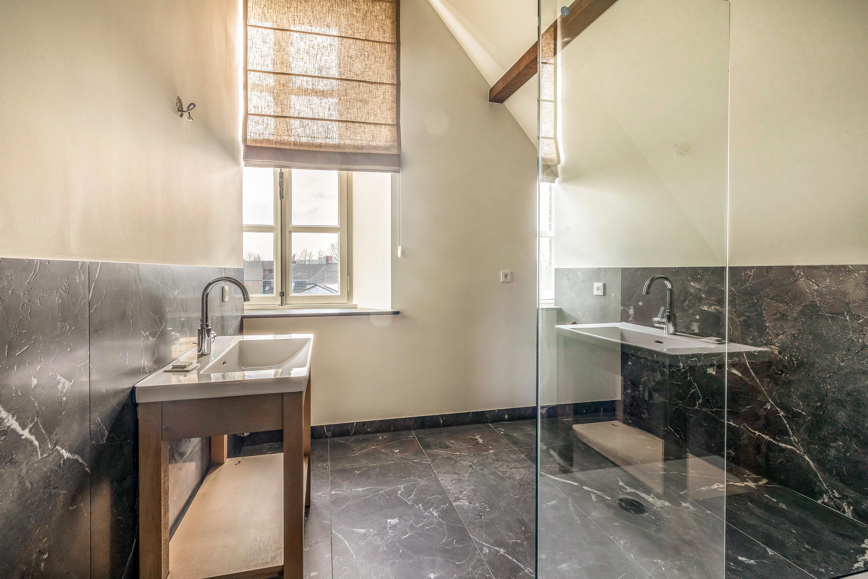 • A luxury bathroom with modern finishes and high-quality materials, including a walk-in shower and stylish sanitary fittings.