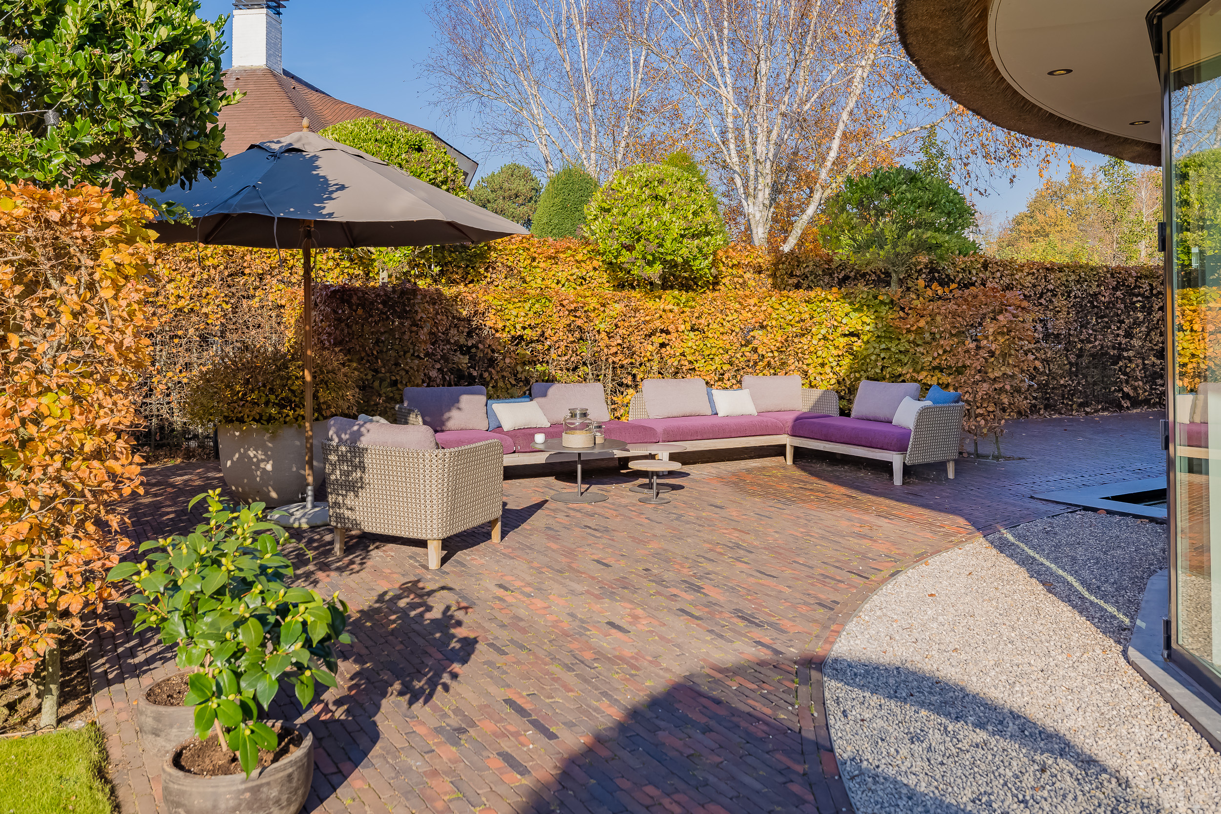 The garden, designed by a landscape architect, is a living artwork — with mature trees, colourful borders, and multiple terraces for every moment of the day.