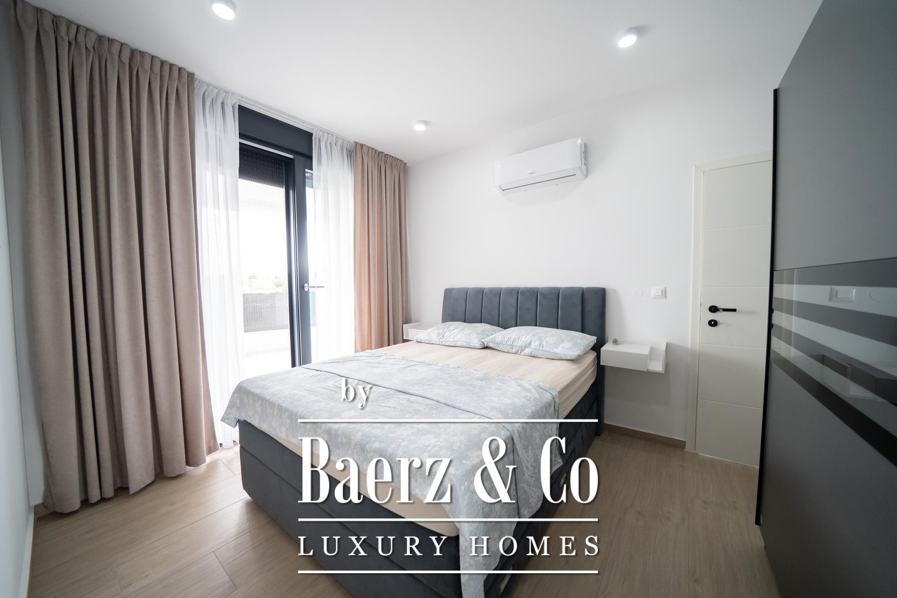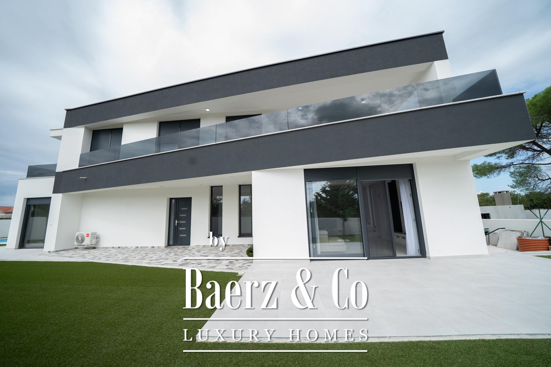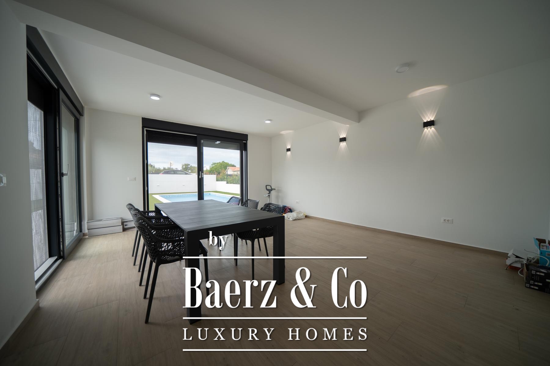Every space is fully furnished in a modern idiom, while underfloor heating and individual air conditioning ensure year-round comfort. Floor-to-ceiling glass connects interior luxury with the surrounding greenery. Outdoors, a pool framed by mature landscaping promises discretion and relaxation. Essential everyday amenities are conveniently close, aligning modern living with privacy and a connection to nature. This luxury townhouse for sale in Zadar Okolica is tailored for those who seek balance, style, and serenity.