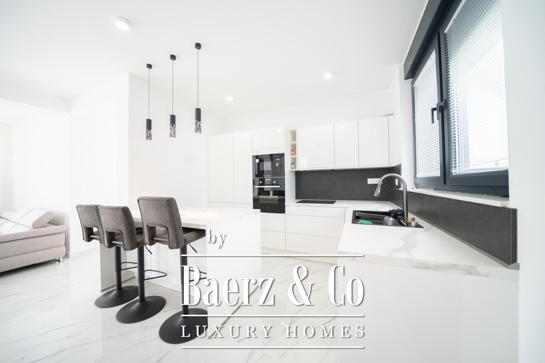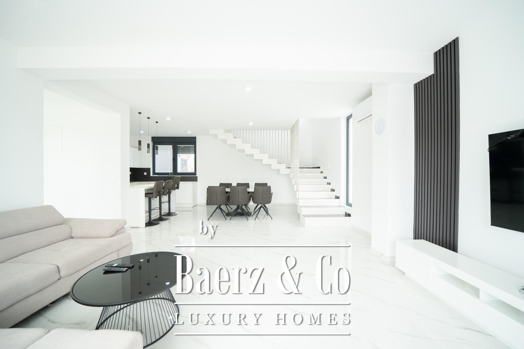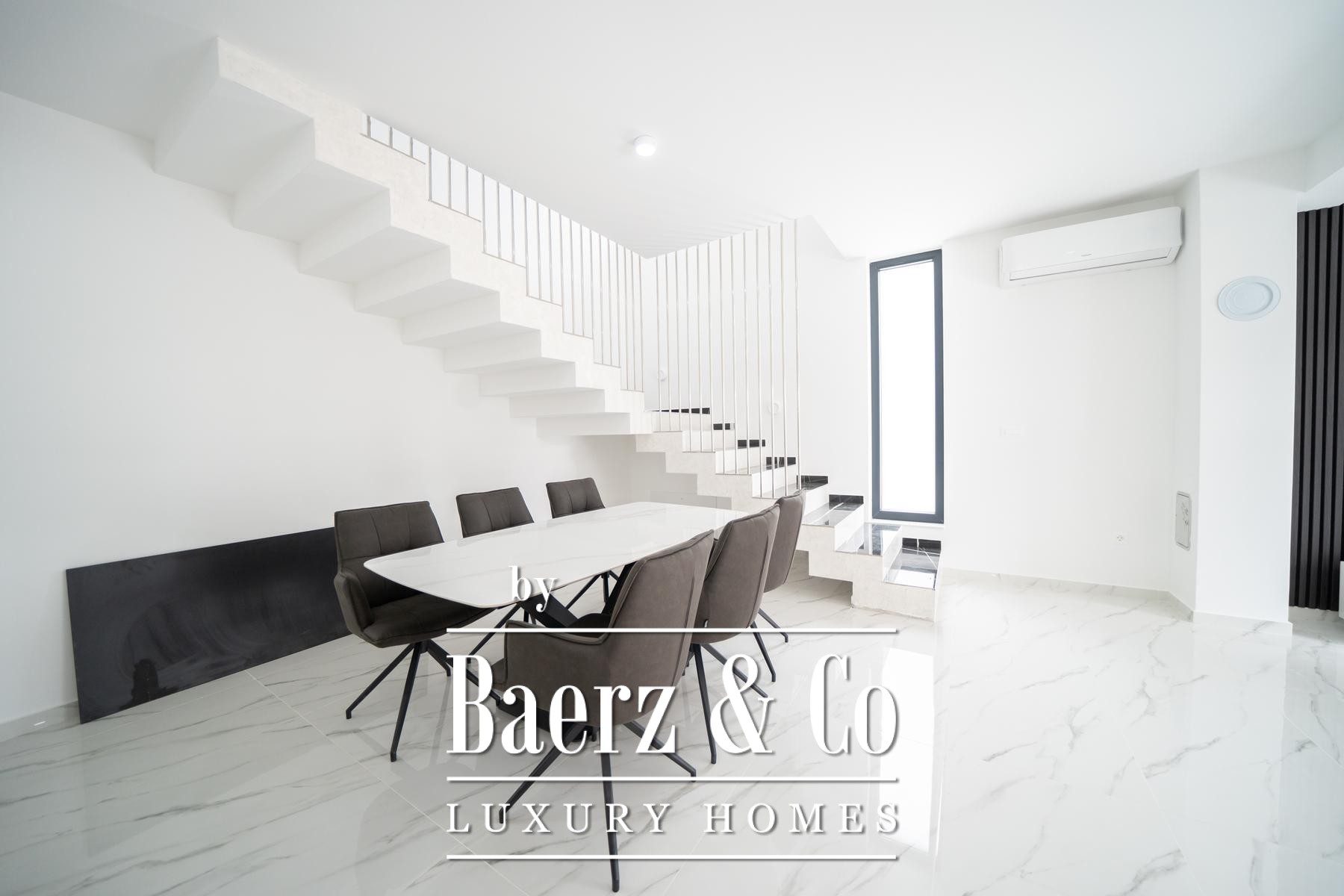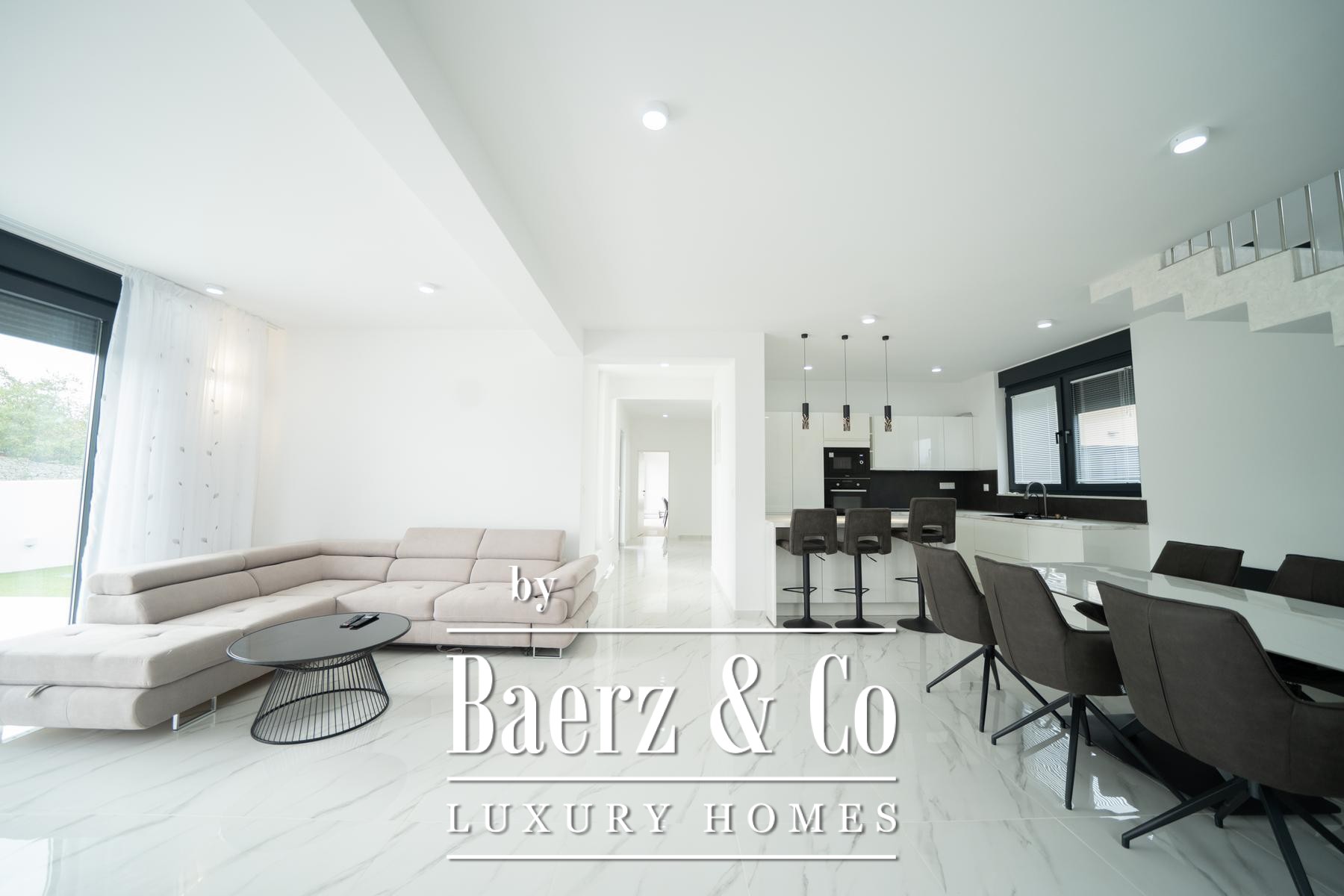 Townhouse Zadar Okolica is a contemporary property offering 200 m² of sophisticated living space within a private plot of 623 m². This townhouse in Zadar Okolica immediately impresses with its restrained elegance and sense of proportion. The home spans two thoughtfully arranged floors connected by an internal staircase, creating a fluid atmosphere that is suited for both privacy and sociability.